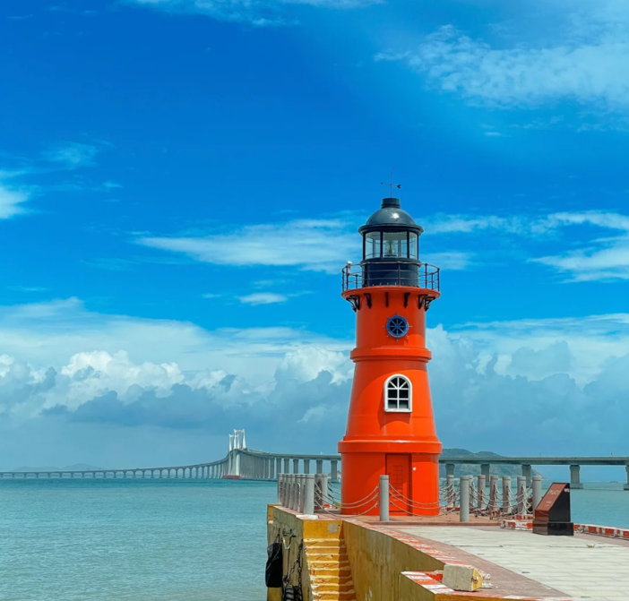 长山尾灯塔位于启航广场,灯塔塔身全红色,十分亮眼,风格清新,吸引了众多文艺青年到此打卡。这里还能远眺南澳大桥全景!