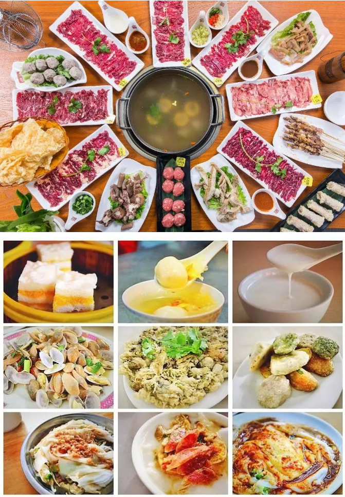 美食推荐:腐乳鸡翅、牛杂、咸水粿、杏仁茶、生腌、牛肉丸、粿条面肠粉、笋粿、麦粿、蚵仔煎、牛肉火锅、卤鹅肉、春卷、海石花、绿豆饼、菜头粿、糕粿、甘草水果、糖葱薄饼、鸭母捻...等等
