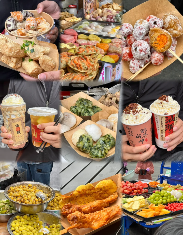 美食推荐:腐乳鸡翅、牛杂、咸水粿、杏仁茶、生腌、牛肉丸、粿条面肠粉、笋粿、麦粿、蚵仔煎、牛肉火锅、卤鹅肉、春卷、海石花、绿豆饼、菜头粿、糕粿、甘草水果、糖葱薄饼、鸭母捻...等等