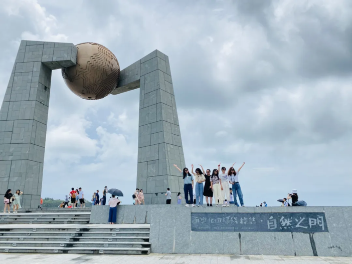 与北回归线标志塔自然之门合影留念,