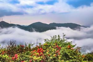 09:30左右到达云冰山上山,云冰山海拔约1500米,风景区主要是都庞岭、西峰岭、东边岭、葫芦岭四座山峰,与广东省连州市交界。景区内自然生态资源特点突出,以梦幻云海、浩瀚星空、古韵民宿、高山杜鹃、奇特冰挂、稀有苔藓、竹林溪谷等为主要核心旅游资源。被誉为华南的“避暑圣地”“人间仙境”“云海秘境”“南方雪乡”