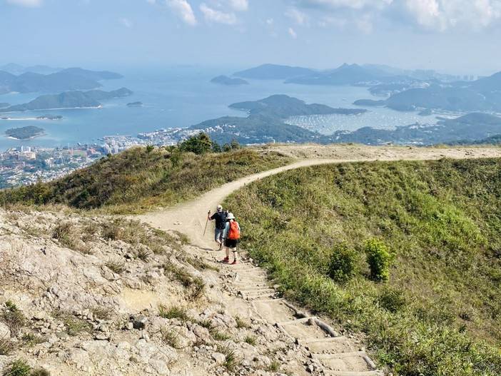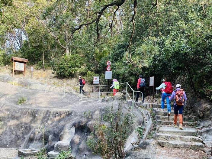 08:30 领队带领热身后开始徒步,今天挑战6、7、8段,也是香港的一条越野跑拉练线路之一的“针草帽”,也是较为辛苦